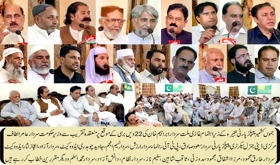 ہجیرہ (پی این ایچ) آزادکشمیر کے بانی صدر اور تحریکِ آزادی کشمیر کے عظیم رہنما غازیِ ملت سردار محمد ابراہیم خان کی برسی عقیدت و احترام کے ساتھ منائی گئی۔ اس موقع پر مختلف تقریبات کا انعقاد کیا گیا جن میں سیاسی و سماجی شخصیات، سول سوسائٹی کے نمائندگان اور طلبہ کی بڑی تعداد نے شرکت کی۔ہجیرہ میں جموں کشمیر پیپلز پارٹی کے زیر اہتمام تقریب سے وزیر حکومت سردار عامر الطاف،مرکزی ڈپٹی جنرل سیکرٹری پیپلز پارٹی سردار سعود صادق ،پی ٹی آئی رہنماء سردار ارزش،سردار نسیم انجم،جاوید چوہدری ایڈووکیٹ،سردار آزاد،سردار طارق محمود،مرزا اشفاق،محمود سدوزئی،ثاقب شاہین،سلیم ناز،سردار نظام،دانش آزاد،سردار محمد اسلم،مولانا مصطفی شاکرودیگر مقررین نے خطاب کیا،اس موقع پر مقررین نے غازی ملت سردار محمد ابراہیم خان کی تحریک آزادی کشمیر و سیاسی کردار پر روشنی ڈالی،مقررین نے کہا کہ غازیِ ملت سردار محمد ابراہیم خان نے جس عزم، قربانی اور بصیرت کے ساتھ ریاستِ جموں و کشمیر کی آزادی کی بنیاد رکھی، وہ ہماری تاریخ کا ایک روشن باب ہے۔ ان کی قیادت میں 19 جولائی 1947 کو الحاقِ پاکستان کی قرارداد منظور ہوئی، جو کشمیریوں کے نظریاتی اور سیاسی تشخص کا مظہر ہے۔مقررین نے کہا کہ آج ہمیں غازیِ ملت کے افکار کو سمجھنے اور ان پر عمل کرنے کی ضرورت ہے۔ انہوں نے نہ صرف ایک سیاسی رہنما بلکہ ایک سچے عاشقِ پاکستان کے طور پر اپنی پوری زندگی جدوجہد میں گزاری۔اس موقع پرجموں کشمیر پیپلزپارٹی ہجیرہ کے صدرڈاکٹر سردار اشتیاق امیر،جنرل سیکرٹری ظفر منظور،آرگنائزرسردار اسدرسول،سیکرٹری نشرو اشاعت سردار یاسین زیب،ٹھیکیدار سردار امتیاز،سردار افتخار ایوب و دیگر موجودتھے۔اس موقع پر دعائیہ تقریب کے بعد مرحوم سمیت تحریک آزادی کے شہداء کیلئے دعائے مغفرت اور مقبوضہ کشمیر کی آزادی کی گئی۔